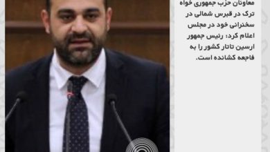 اونگون طلعت، یکی از معاونان حزب جمهوری خواه ترک در قبرس شمالی در سخنرانی خود در مجلس اعلام کرد: رئیس…