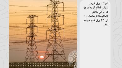 شرکت برق قبرس شمالی اعلام کرد: امروز در برخی مناطق گیرنه از ساعت ۹ الی ۱۵ برق قطع خواهد بود.…