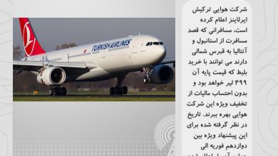 شرکت هوایی ترکیش ایرلاینز اعلام کرده است، مسافرانی که قصد مسافرت از استانبول و آنتالیا به قبرس شمالی دارند می…